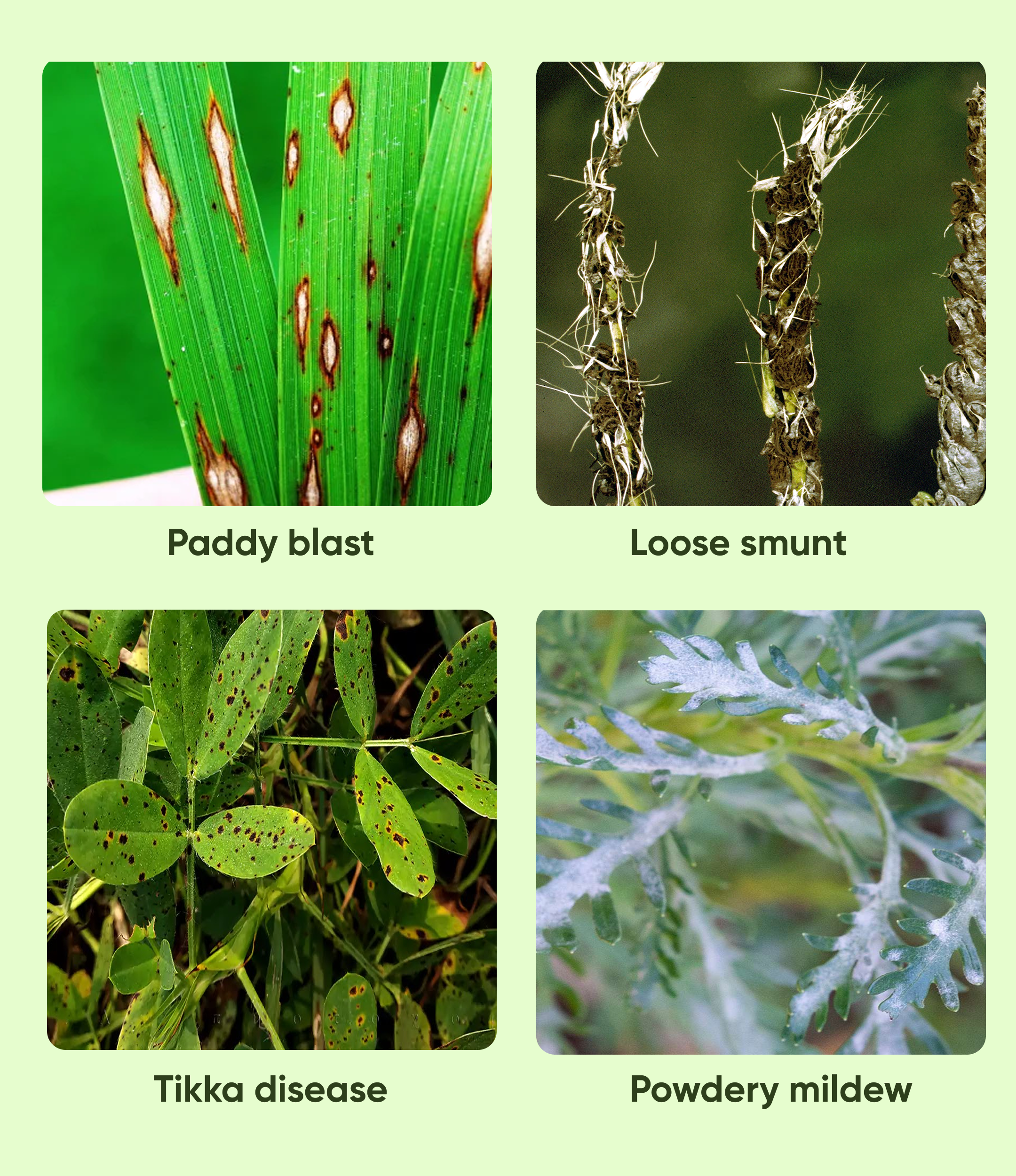 Effective against diseases like leaf spot, powdery mildew, anthracnose, and blight