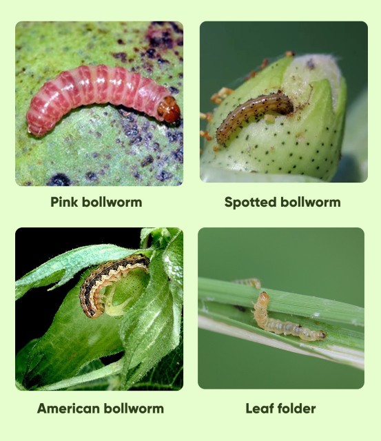 Effective against a broad spectrum of pests including bollworms, leaf folders, and thrips