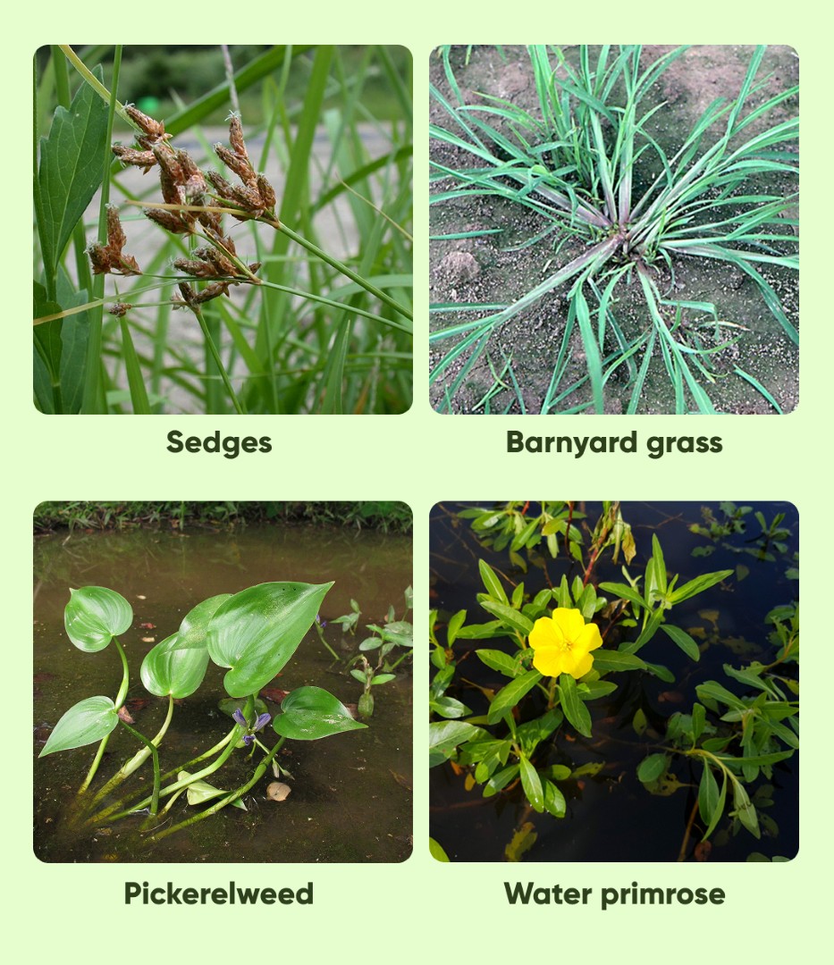 Target Weeds: Grasses, sedges, and broad-leaf weeds