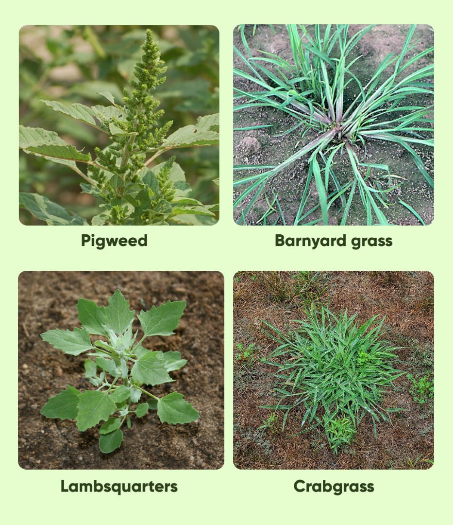 Weeds: Panicum repens, Digitaria sanguinalis, Eleusine indica, Dinebra arabica, Echinochloa colonum, Portulaca oleracea, Commelina benghalensis, Amaranthus blitum, Chenopodium album