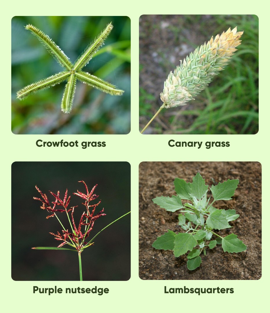 Target Weeds: Digitaria spp., Cyperus esculentus, Borreria spp., Eragrostis spp.